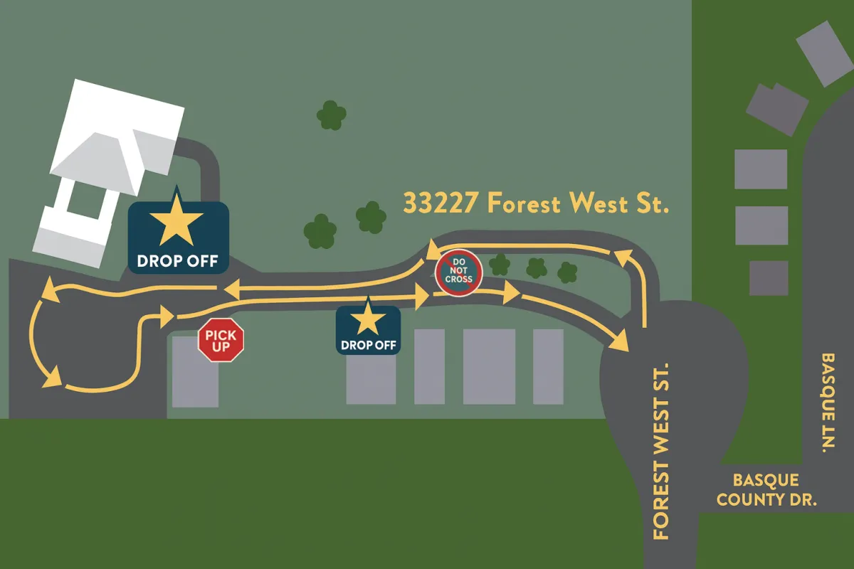 Park vehicle in a designated parking area if you need to talk with your learner, another parent, or are meeting with staff.